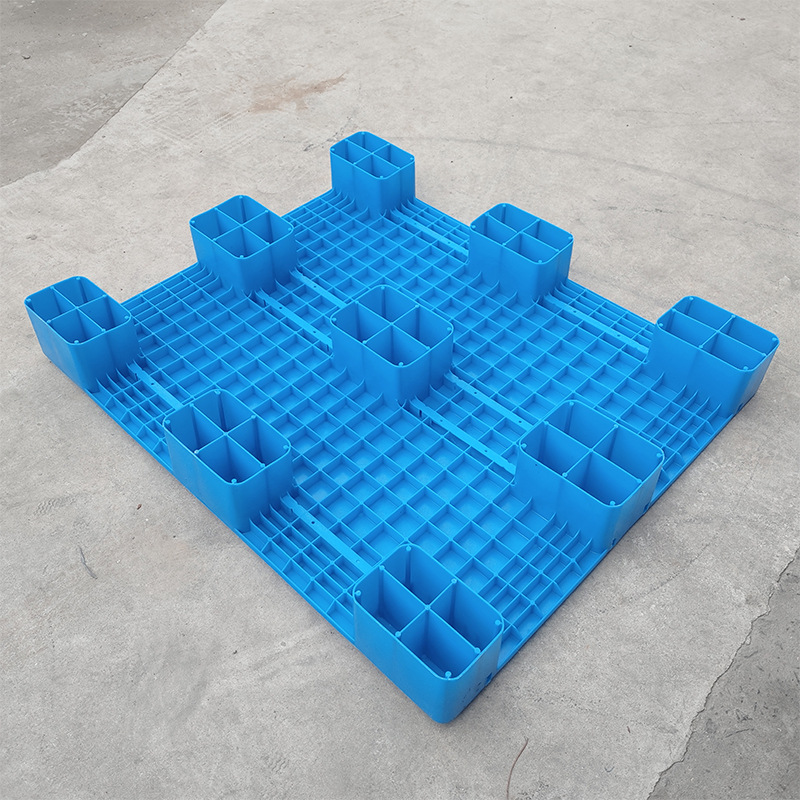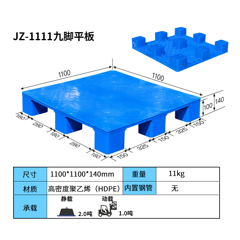 九腳平板塑料托盤底部為“九腳形”設計的塑料搬運制品,其表面為平面,廣泛應用于紡織廠、食品廠、醫(yī)藥廠等企業(yè)。這種托盤的設計特點包括輕質、平穩(wěn)、美觀,無釘無刺,無毒無味,耐酸堿,不腐爛,不易被細菌繁殖,易清洗消毒,不助燃,無靜電,無火花,防暴,防滑溜,回收價值高。與鋼托盤、木托盤相比,九腳平板塑料托盤具有更好的環(huán)保性和安全性,能夠提升企業(yè)形象,提高物流效率。此外,九腳平板塑料托盤因其表面為平板狀,不易積累灰塵,方便清洗;受力均勻,對貨物有很好的保護作用;平面上均留有排氣小孔,具有良好的透氣性和防潮效果。這種托盤主要應用于倉庫輕型貨物墊倉板、叉車周轉較輕貨物使用,不適合于上貨架或者轉載大重量的貨物?