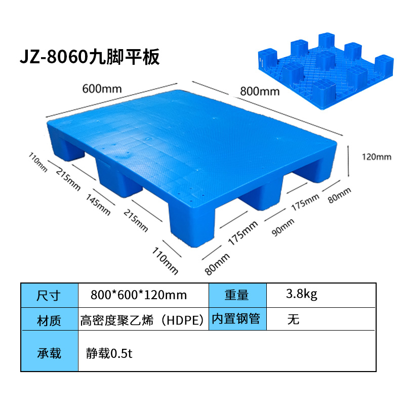 8060九腳平板塑料托盤