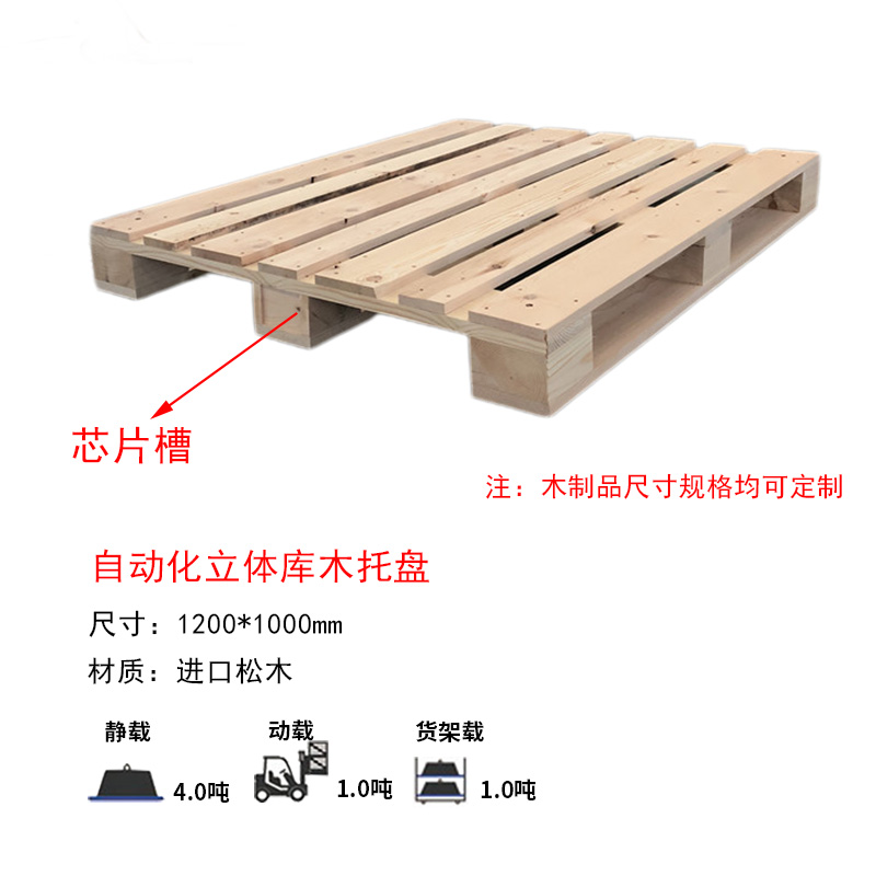 優(yōu)選材料:選用進(jìn)口松木制作,密度560-600kg/立方米,干燥性好,不易變形和開裂,耐腐蝕牢固耐用:采用三種不同強(qiáng)度的螺絲釘加固,隱形美觀,牢固性好芯片卡槽:托盤設(shè)有RFID芯片槽位置,可插電子芯片,高效管理貨物,是智能倉儲、物流電商、立體貨架等行業(yè)的得力助手四邊圓角:四角倒圓角設(shè)計(jì),預(yù)防碰撞時給貨物帶來損害,