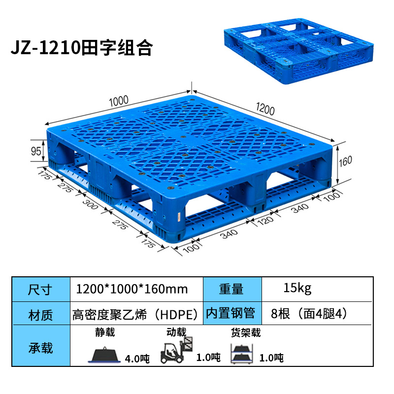 1210田字組合款塑料托盤,可上立體庫貨架,內(nèi)置芯片槽設(shè)計(jì)