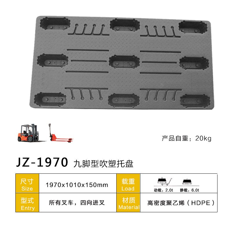 九腳均勻分散在托盤的受力點處,使托盤受力均勻,不易變形。